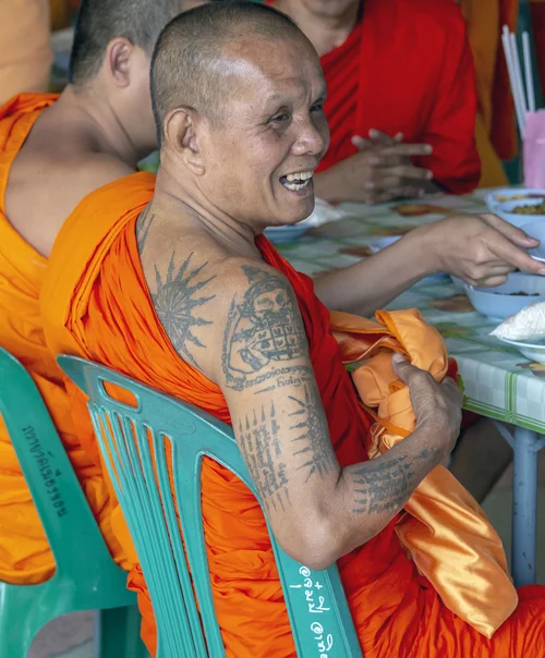 Monks in Myanmar on a tour of the Pindaya Caves. A visit to a sacred site can combine both casual enjoyments and serious devout intentions.
